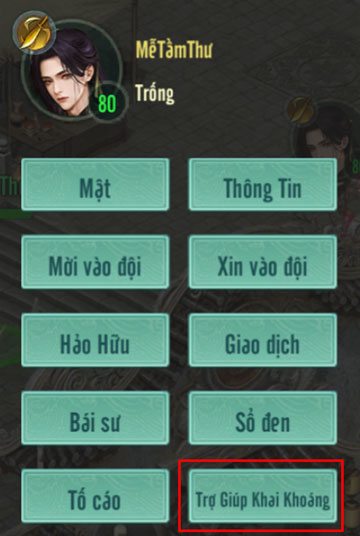 - Người nhận trợ giúp chọn đồng ý thì giao diện Trợ Giúp Khai Khoáng sẽ mở ra: