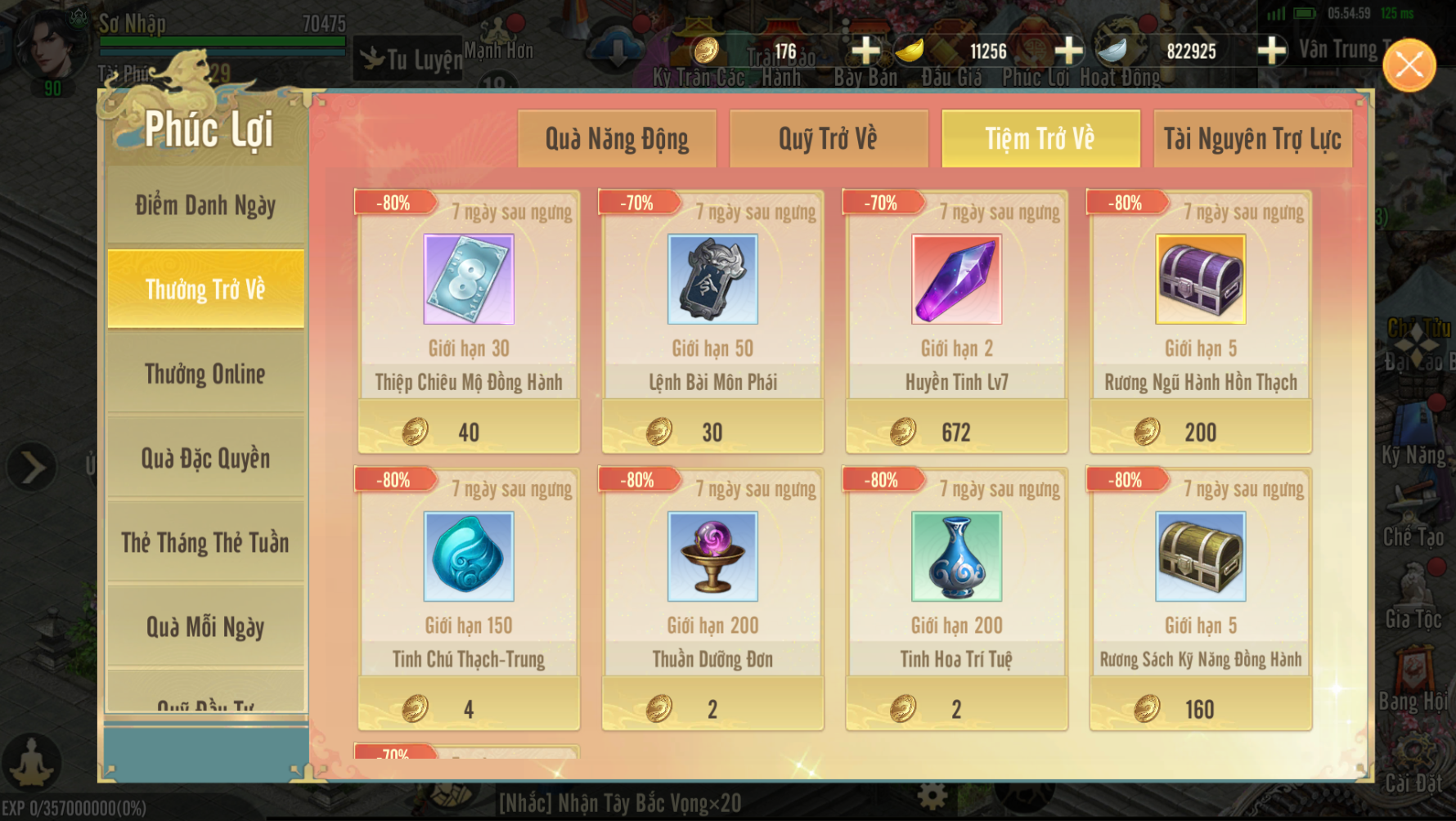 - Trong vòng 7 ngày đầu tiên kể từ khi đăng nhập trở lại, có thể mua một số vật phẩm giá trị tại Tiệm Trở Về với giá Kim Long ưu đãi cực hấp dẫn.
