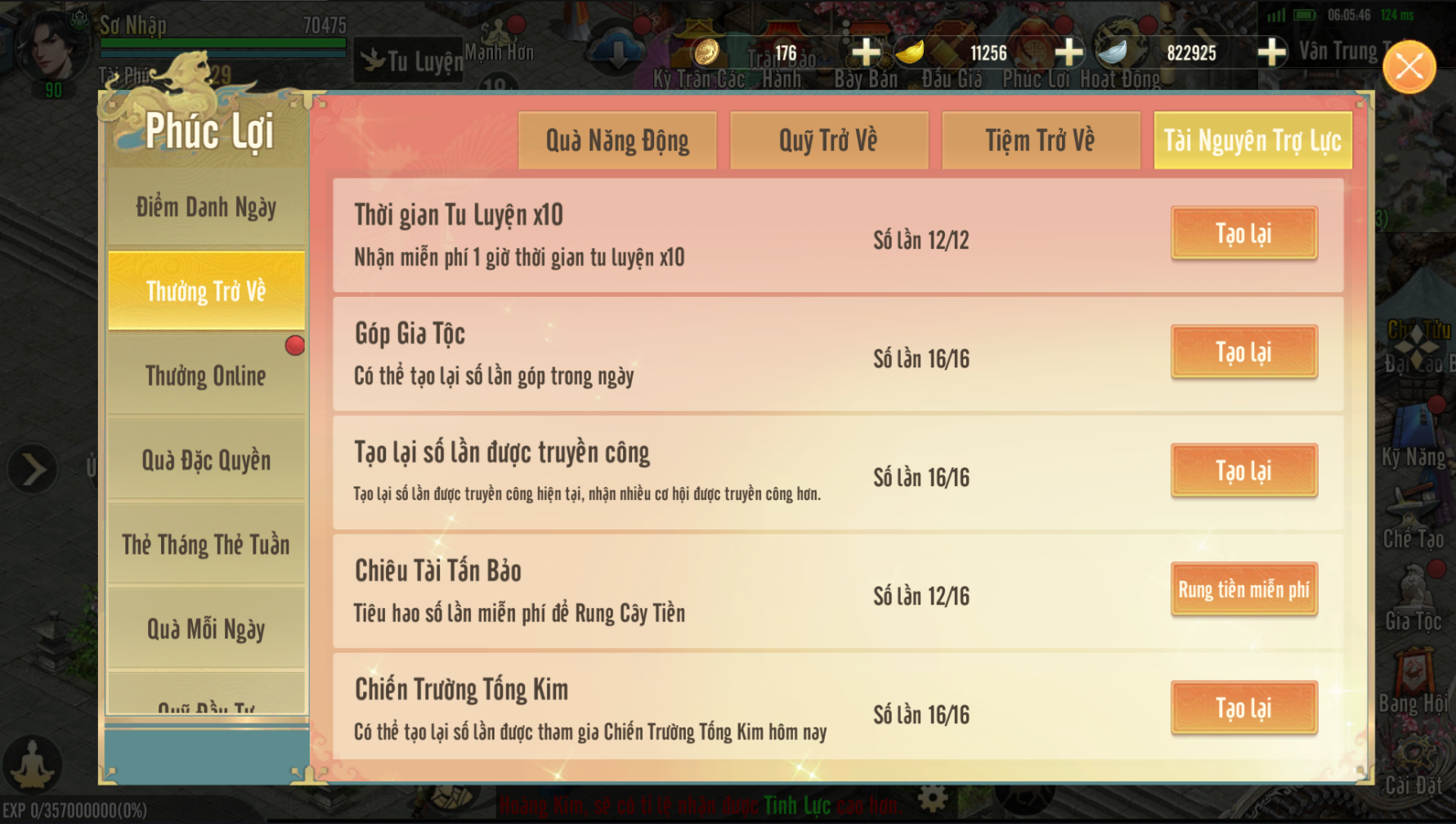 - Có thể kiểm tra trạng thái trở về tại vị trí thông tin nhân vật hoặc mục Thưởng Trở Về tại giao diện Phúc Lợi.