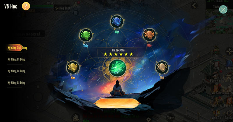 - 1 ô Võ Học Chủ Động + tối đa 3 ô Võ Học Bị Động.