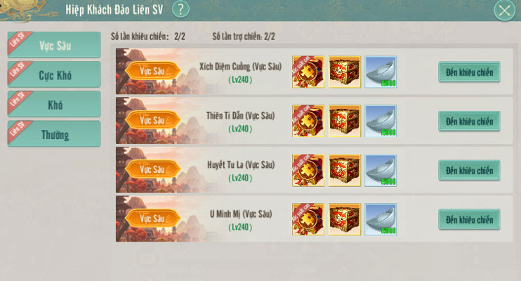 - Tùy vào thời gian máy chủ sẽ mở ra các độ khó khác nhau của Hiệp Khách Đảo Liên Server.